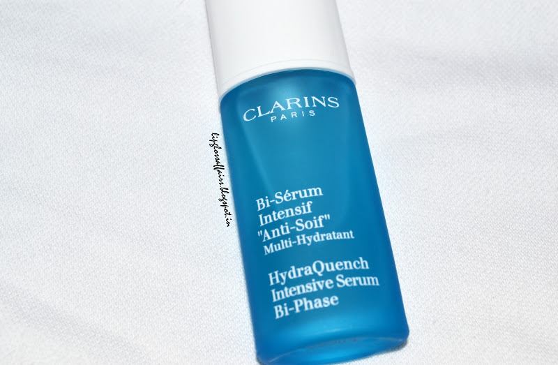 - Clarins Hydra Quench Intensive Serum. Serum from two phases has hyaluronic acid in the composition and vegetable components. With this composition, the cosmetic nourishes the dermis with moisture and makes it smooth. Also in the composition is vitamin E, which acts as an antioxidant.