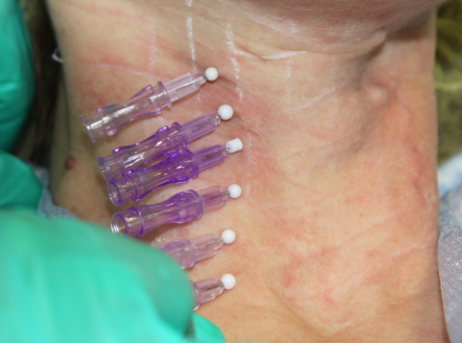- Mesothreads are introduced using thin needles into the skin and act as a scaffold. The minimum number of needles is 10, and on average 50-70 is needed. The result is noticeable immediately, the skin becomes tightened after the first procedure. But people still leave disgruntled reviews, because after the operation there are seals and bruises that do not go away for a long time.
