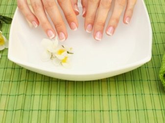The best way to strengthen the nail plate are baths. For their preparation requires a minimum of components, and the preparation of a small bath will take several minutes. Sea salt, medicinal herbs, essential oils and other available components can be used as a base.