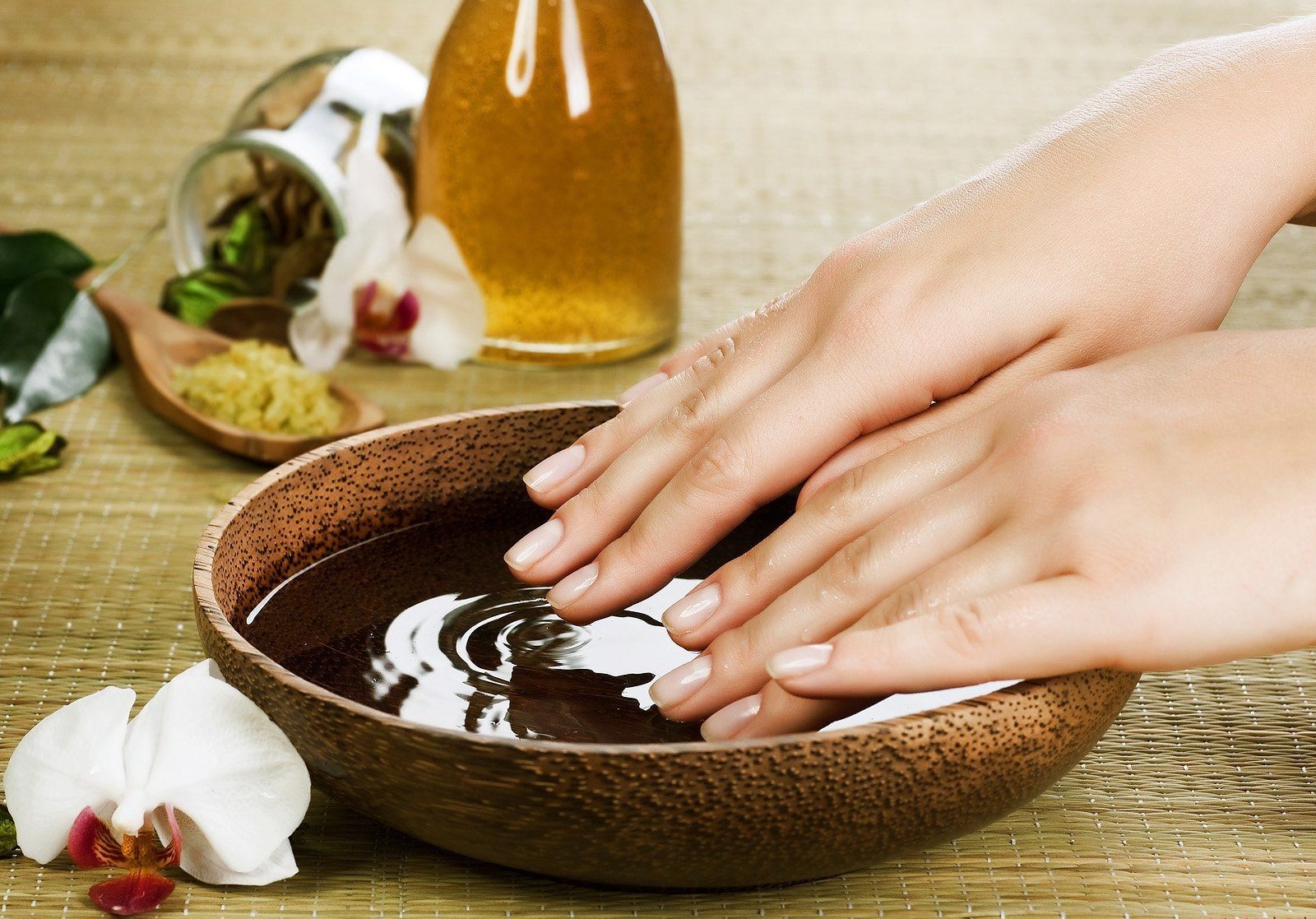 After the bath, it is recommended to rinse your hands in running water and apply a moisturizer as the salt dries the skin. You can also use cosmetic oil. Do not forget to pay special attention to the treatment of the cuticle.