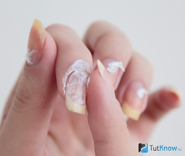 Masks are applied to the nail plate with soft massage movements. Means carefully rubbed directly into the nail and cuticle. After completing the procedure, you can wear cotton gloves and leave the mask for a few hours on your hands.
