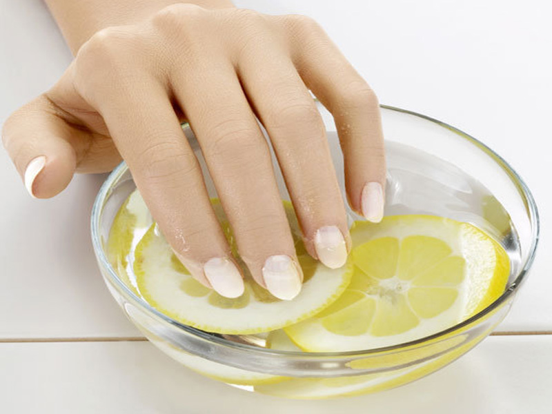 - Get rid of the yellowness of the nails and strengthen the plate will help a slice of lemon.Often the nails become weak and brittle due to a lack of vitamin C. Then any fruit with a high content of vitamins, for example, lemon, comes to the rescue. For the procedure you will need a small slice of lemon and some free time. Apply a slice of lemon to each nail for 30 seconds. This procedure is good because it does not require you a lot of free time or long preparation. Feeding the nail plate can be at bedtime or even during the lunch break. And instead of lemon, you can use grapefruit or orange.