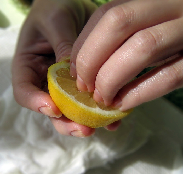 If soon you plan to carry out such a procedure as nails with a gel, you should take care to strengthen the plate. This will help the most ordinary lemon. We squeeze out some juice from a sunny fruit - approximately one tablespoon. It is best to do it over a small cup, so that later it would be convenient to mix the juice with other ingredients and use the magic composition. Next, add literally a pinch of salt, you can use marine or normal. The resulting mixture should be applied with a brush on the nails, and after twenty minutes, rinse with warm water.