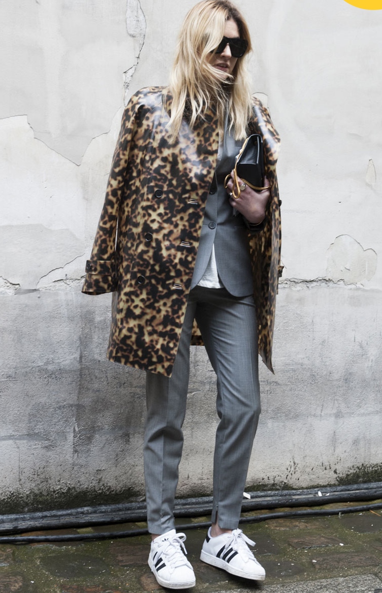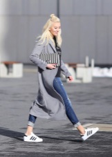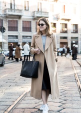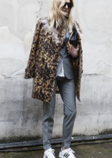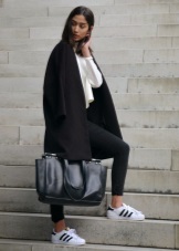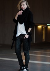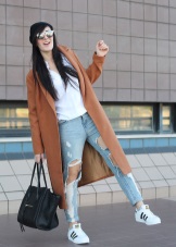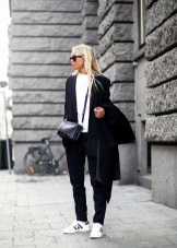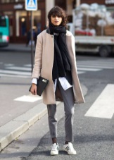 For the autumn period, you can combine sneakers with a coat. Points will help to complete the image.