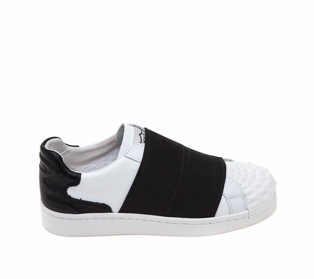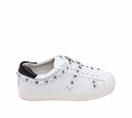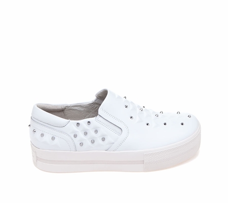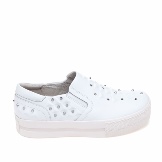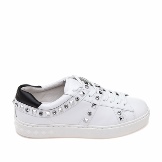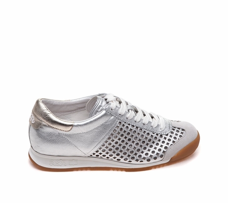 - A nice combination of bright white basic color sneakers with thin straps of metallic silver.