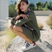 - Women wear sports shoes today with almost any clothing. Especially in the trend are fitted skirts, dresses and pants. Of course, a strict business style is unlikely to allow you to wear sneakers or sneakers, but they perfectly fit into the casual and romantic style.