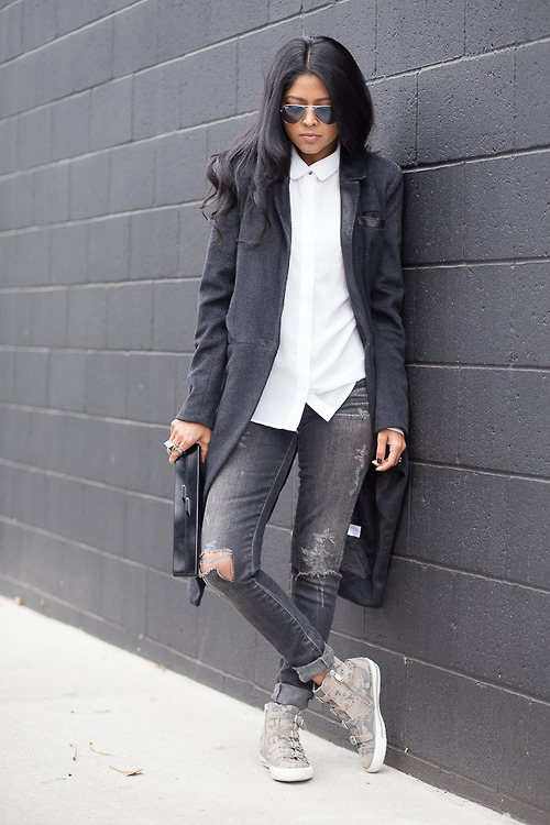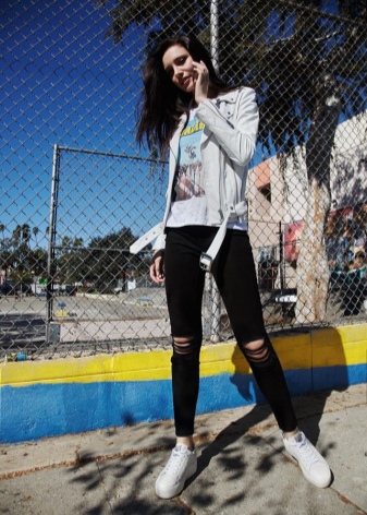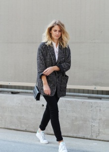 - Worn to the holes casual: narrow cropped jeans, light, light top and a cape of any style: poncho, cape or wrap jacket. Also great companions for original Ash sneakers.