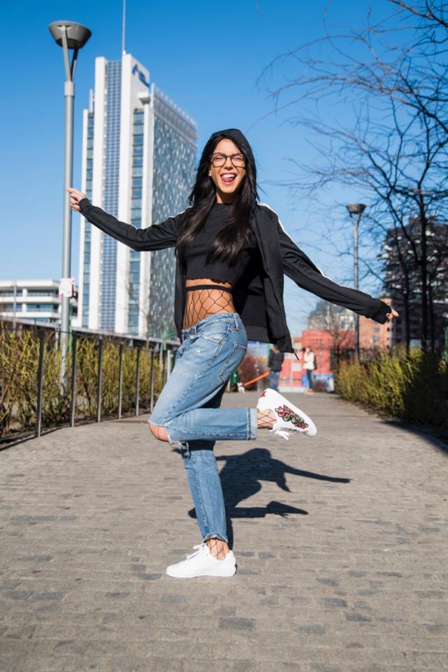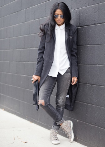 - Fashion magazines, however, are full of ambiguous and extraordinary combinations of sneakers and clothing. For example, in the new season, stylists recommend to shoe sneakers with an animal print under a strict black dress case, complementing it with footwear color accessories.