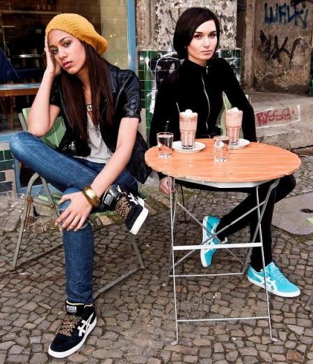 The color gamut of Asics sneakers is very rich in shades and color compatibility. Female models are lighter and brighter: white, pink, lilac, lime, yellow, various color combinations.