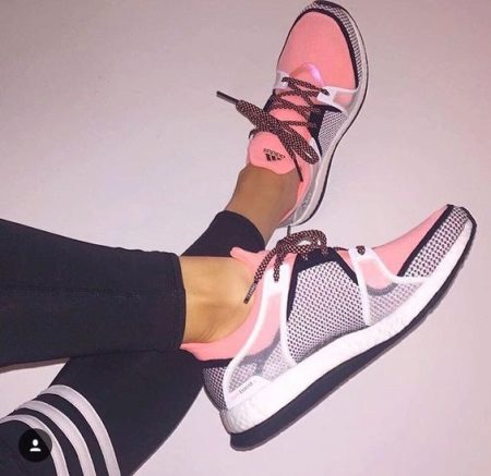 The fabric part of the Adidas Boost Sneaker is a durable, stretching material, manufactured using Techfit technology developed by the company. Thanks to this, the sneakers fit snugly on the leg, and special support can be provided by special ring-shaped inserts on the upper part of the sneakers.