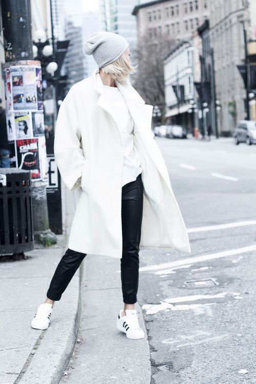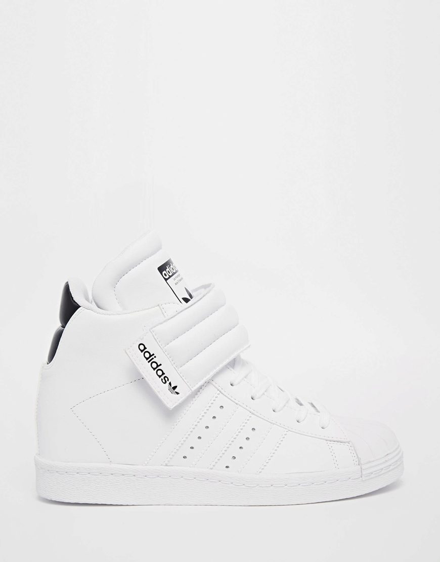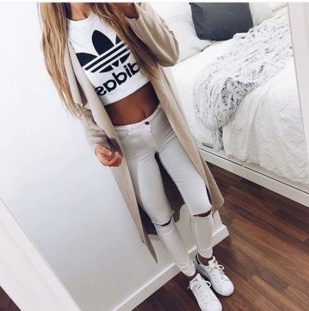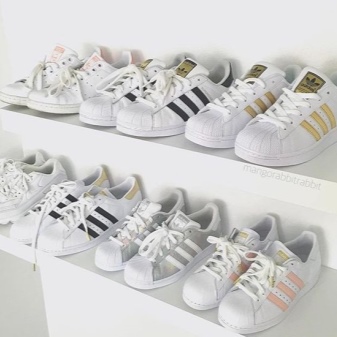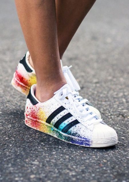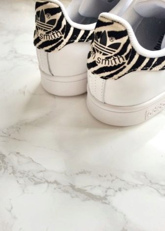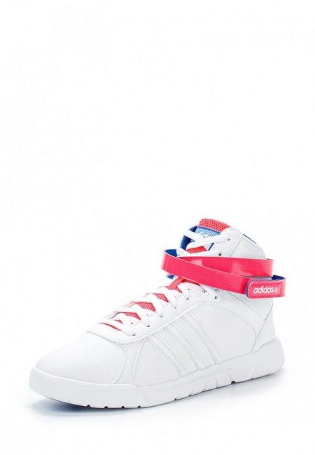 Another trend in the range of white sneakers from Adidas is high models, popular with young people (slim girls like to wear them with leggings).