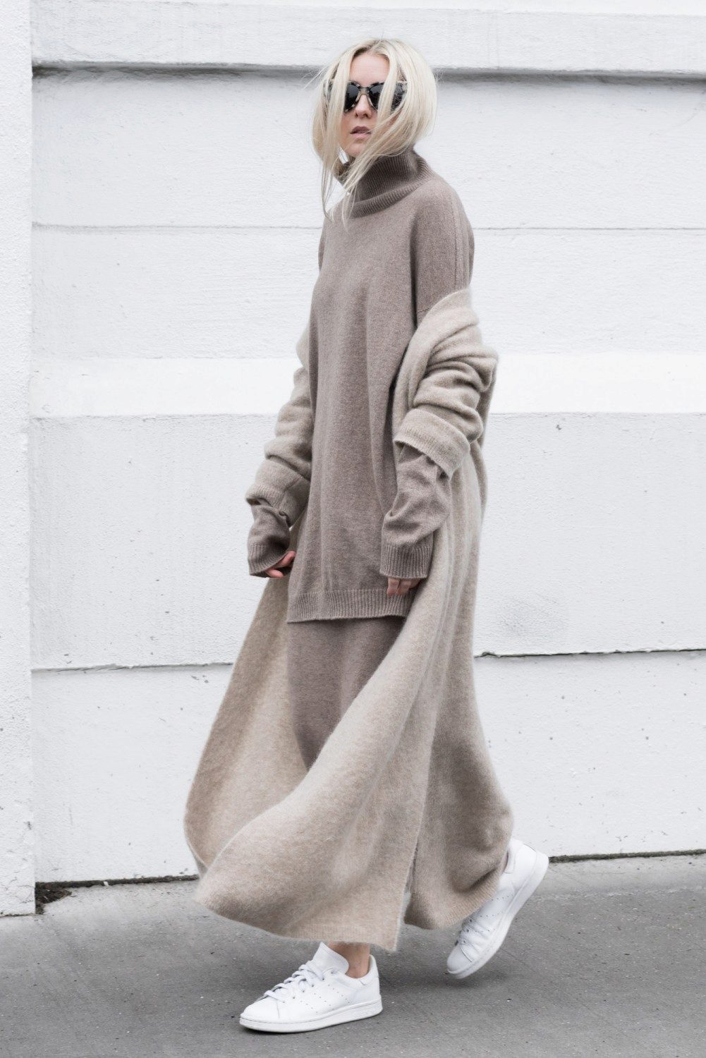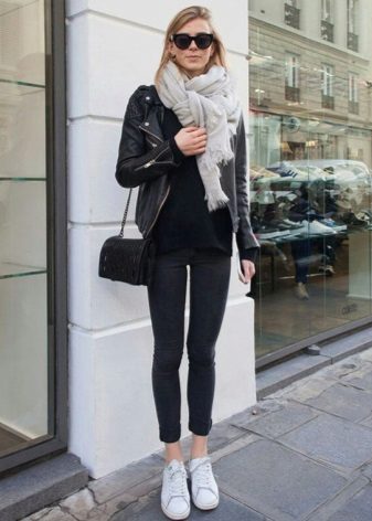 Universal same ensemble for everyday wear can be created by combining German sneakers with narrow jeans or trousers.