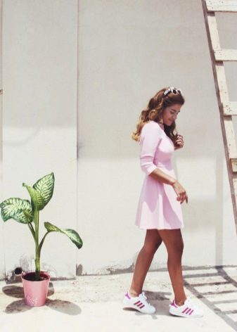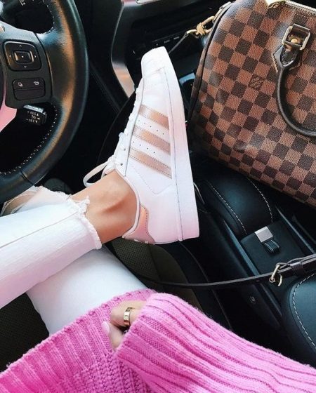 Ladies with pleasure wear stylish white sneakers from Adidas. This is confirmed by numerous positive reviews. They are worn not only for a walk in the usual combination with jeans, but even to the office along with business suits and strict dresses.