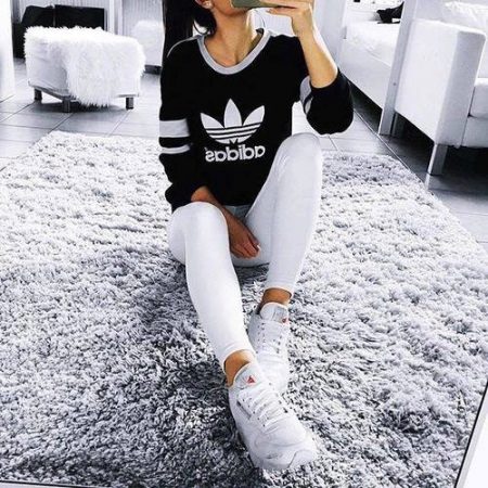 Especially stylish you will look if you wear a fashionable sweatshirt and leggings in the gym.
