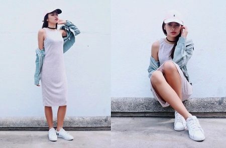 As you know, the sport chic style is in fashion today, when sports items are successfully combined with feminine, romantic or strict clothing.
