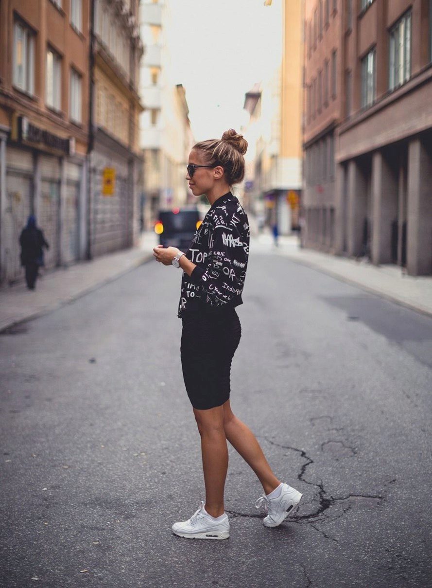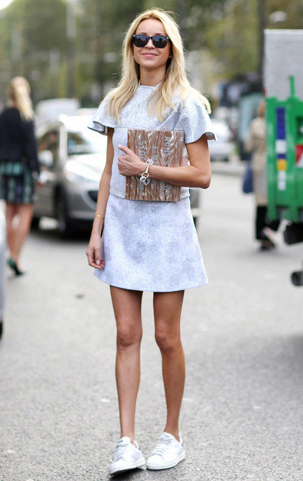 - Sneakers with a dress or skirt. Previously, it seemed that it is not compatible. But for girls there are no barriers, especially shocking young ladies - they combine sneakers even with evening dresses.