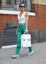 Top and cropped jeans are another combination with classic white sneakers. In this dress you can meet with friends or go to the club. As accessories, use a small, rectangular clutch, backpack or glasses.