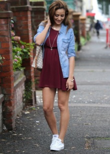 You can also combine sneakers with combination dresses and silk pajamas. Keep in mind that under the "pajama" set light sports sneakers are best suited, and any model will make friends with the combination.