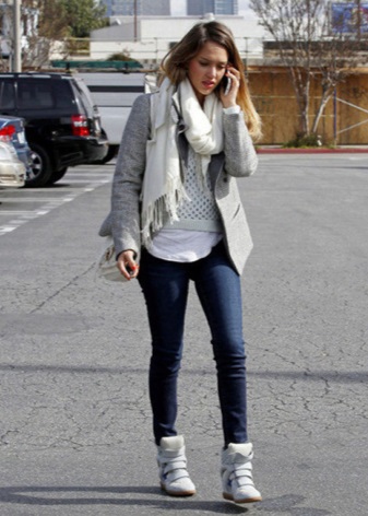 There are several types of sneakers. Usually they are divided by sole, shape and style. Created by designer Isabel Marant, wedge sneakers diversify your every look. These shoes are best worn with jeans, strict pants or puffy skirts are not classic style. Sneakers with a classic double-breasted coat will look stylish and fashionable.