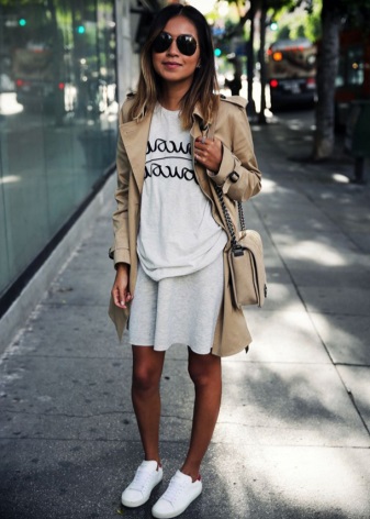 A wide, free dress will also look perfect with sneakers. Clothes choose pastel, dull colors. If possible without a large figure. In this way, you will show the ease, originality and your luxury.
