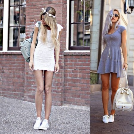 Some women of fashion prefer to experiment, wearing white sneakers with cocktail dresses. So they are trying to make a "business card" of their own style, but this image does not always suit beauties.