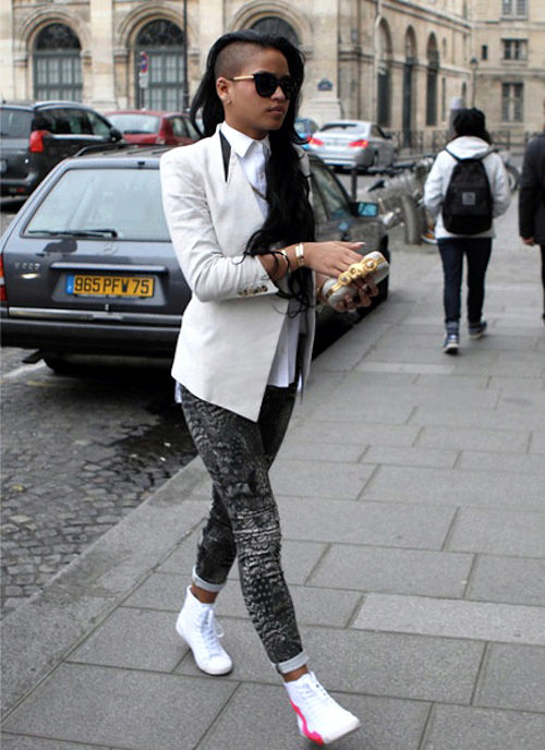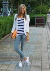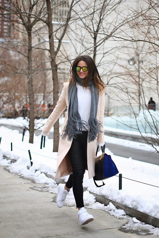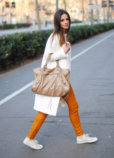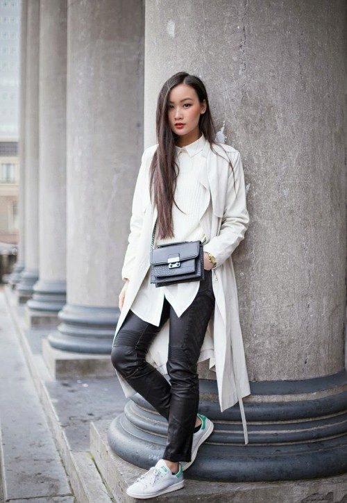 White sneakers can be combined in completely different bows, sometimes even the most unexpected. However, there are several rules by which you can create particularly spectacular images.