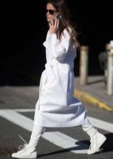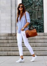 There are some age restrictions. Creative youth can now afford to wear white sneakers, even with tuxedos and chiffon skirts. Simple white sneakers in some extraordinary bows really look very trendy. But with age, it is better to leave these experiments young and give preference to the usual combination of sneakers with casual wear.