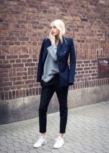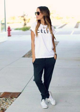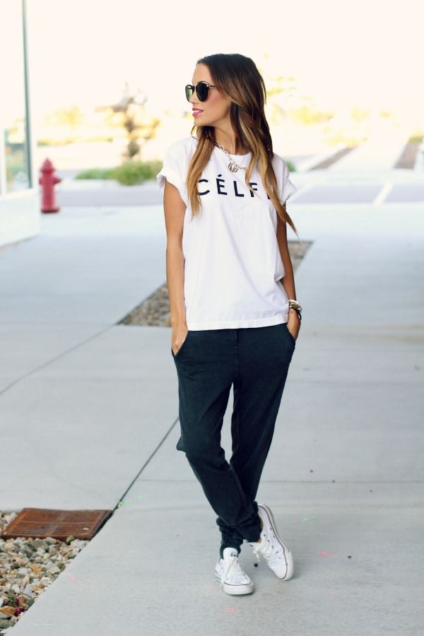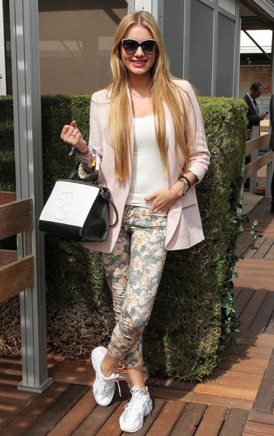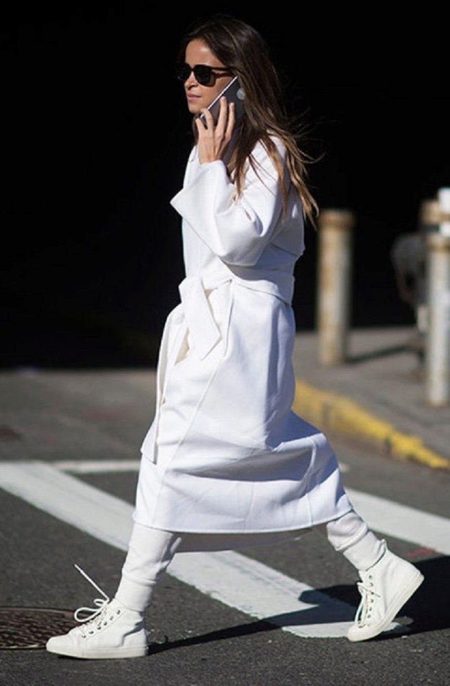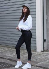 The first thing you should pay attention to is the combination of white sneakers with a sporty style. First of all, you need to pay attention to the texture of sportswear, so as not to look as if you have just left the gym. The casual tracksuit should be made of more expensive fabrics, should not fit the silhouette, and the lines should be smoother and free.