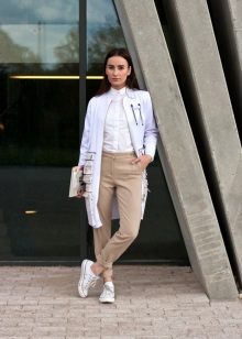 Recently, the model of sneakers, styled as sneakers, has gained popularity. Due to the more classic lines and comfort in wearing, this model allows you to combine it with various everyday bows, including trouser suits. White color in these models could not be more universal and in demand among buyers.