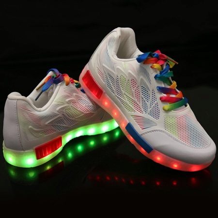 Models of white sneakers and with bright monochrome and multi-colored laces and luminous soles are relevant.that looks especially beautiful on a snow-white background. Sometimes manufacturers attach several variants of colored laces to a pair of sneakers.