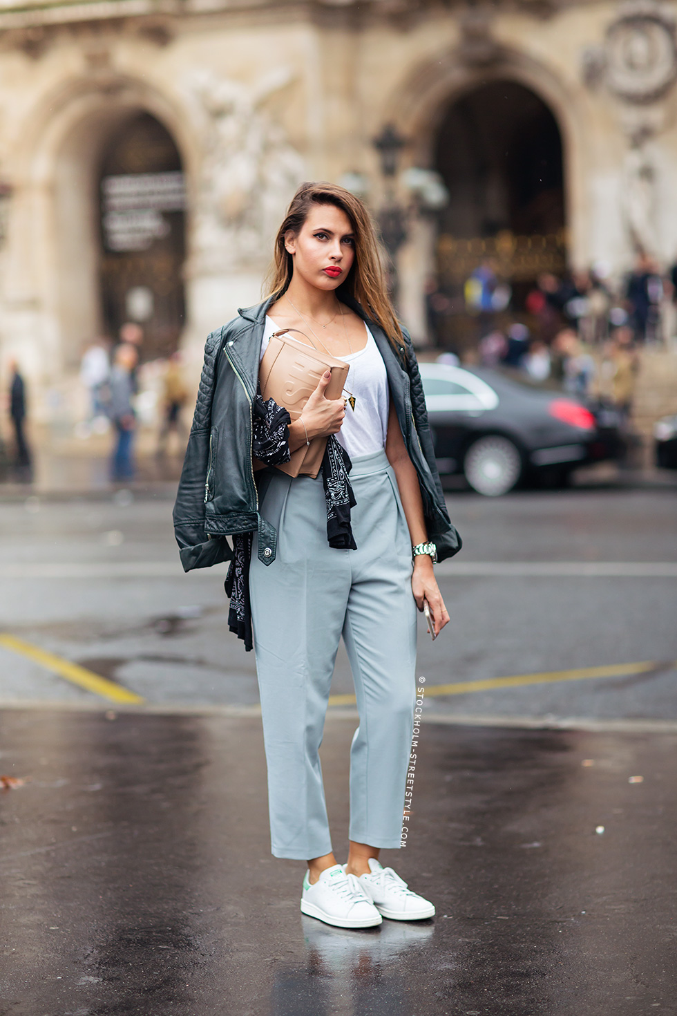 Sport shoes and a classic pantsuit are also worn. And not only with white or black sneakers: a variety of colors.