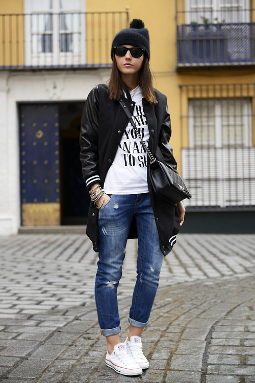 White sneakers with dark or light jeans will look great.