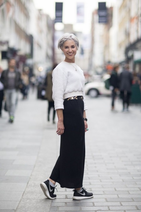 Skirt or dress to the floor can be safely worn with any sneakers - it is comfortable and beautiful.