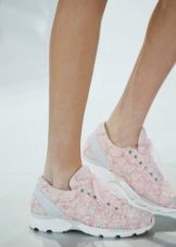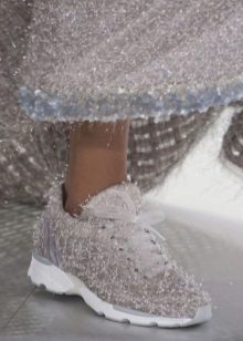 As for the latest collection of Chanel shoes, there are sneakers from the finest lace, adorned with sparkling sequins, and boucle fabric, which is the favorite material of the French brand.