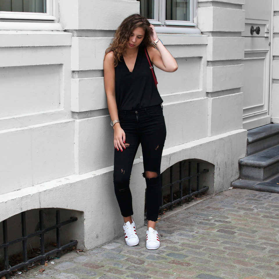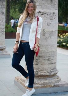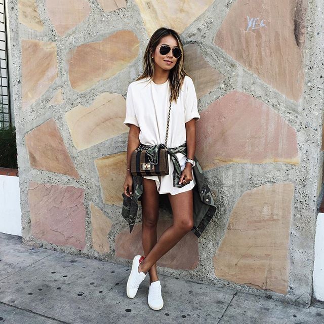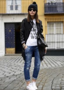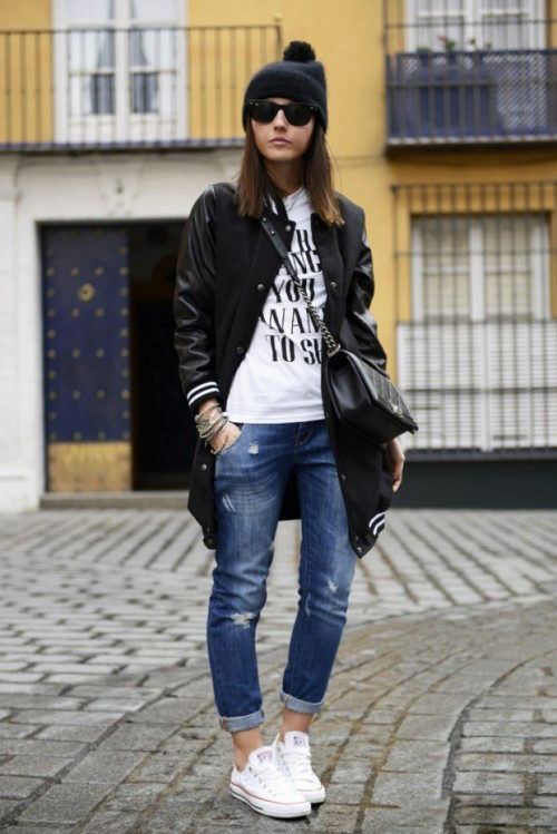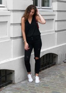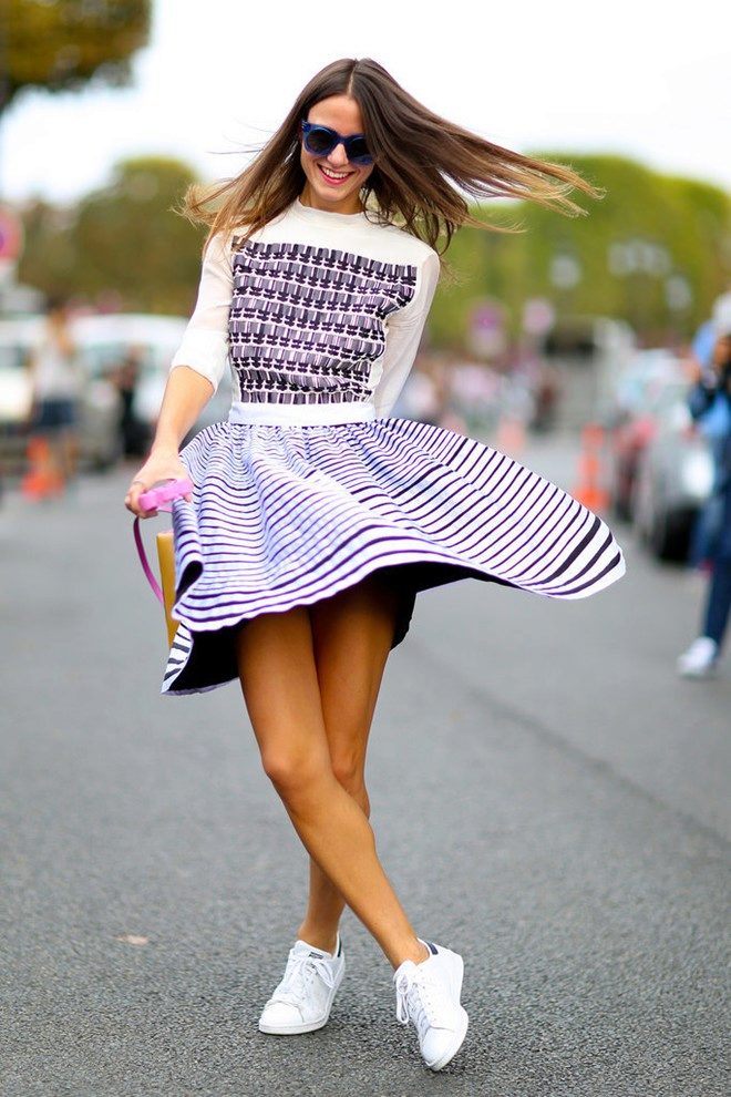 Of course, the most common option is to wear sneakers with jeans, shorts, sweatpants or skirts.