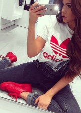 The company Reebok admits mostly monochrome models that look incredibly stylish. For example, sneakers in white are ideal for creating an urban look for every day. Bold ladies create with such sneakers bright images: sneakers with a skirt, a dress.