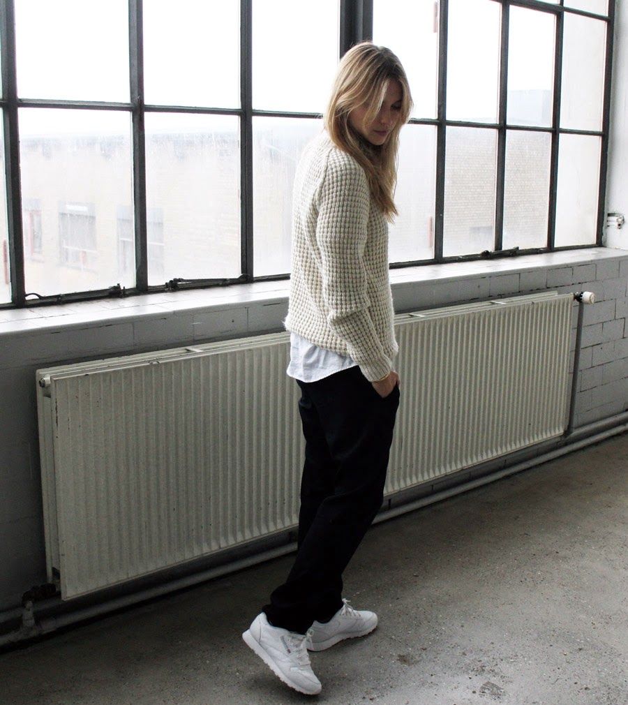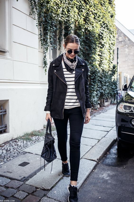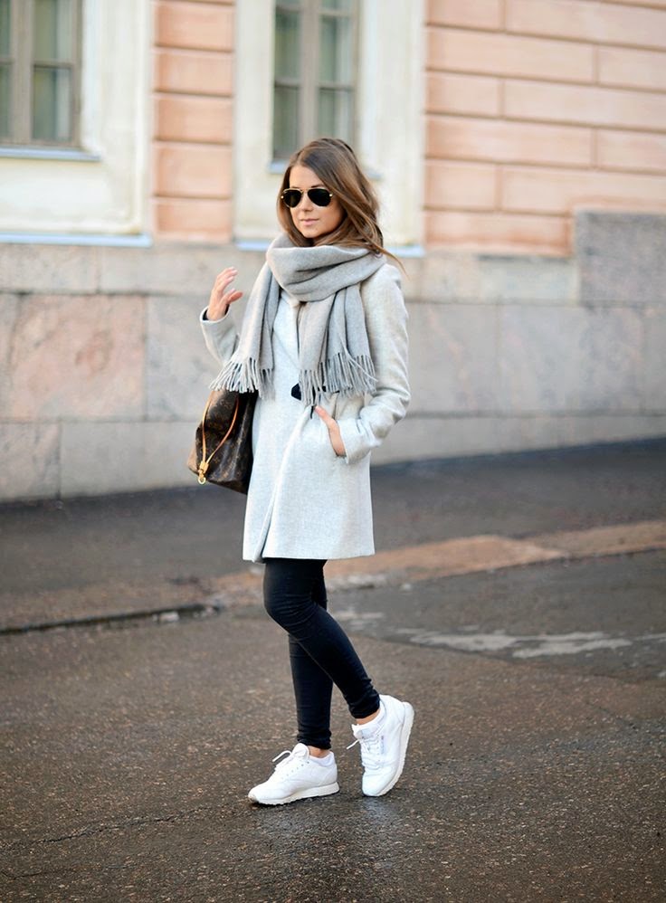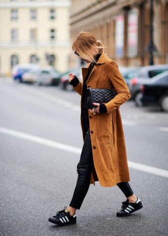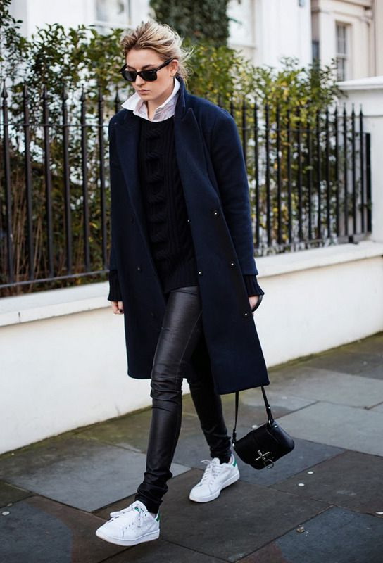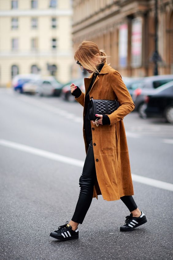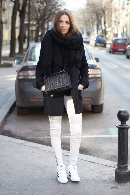 Love the black and white classics? Then you should look at Adidas Original. These sneakers have thick soles, so are perfect for spring. And this model can be complemented with narrowed white jeans, a drape black coat, a large black scarf and a leather black clutch.