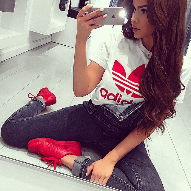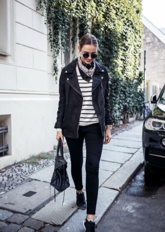 Total Black also does not lose its relevance. Such a bow can be diluted with monochrome red sneakers. The image looks very bright, and you definitely will not be ignored.