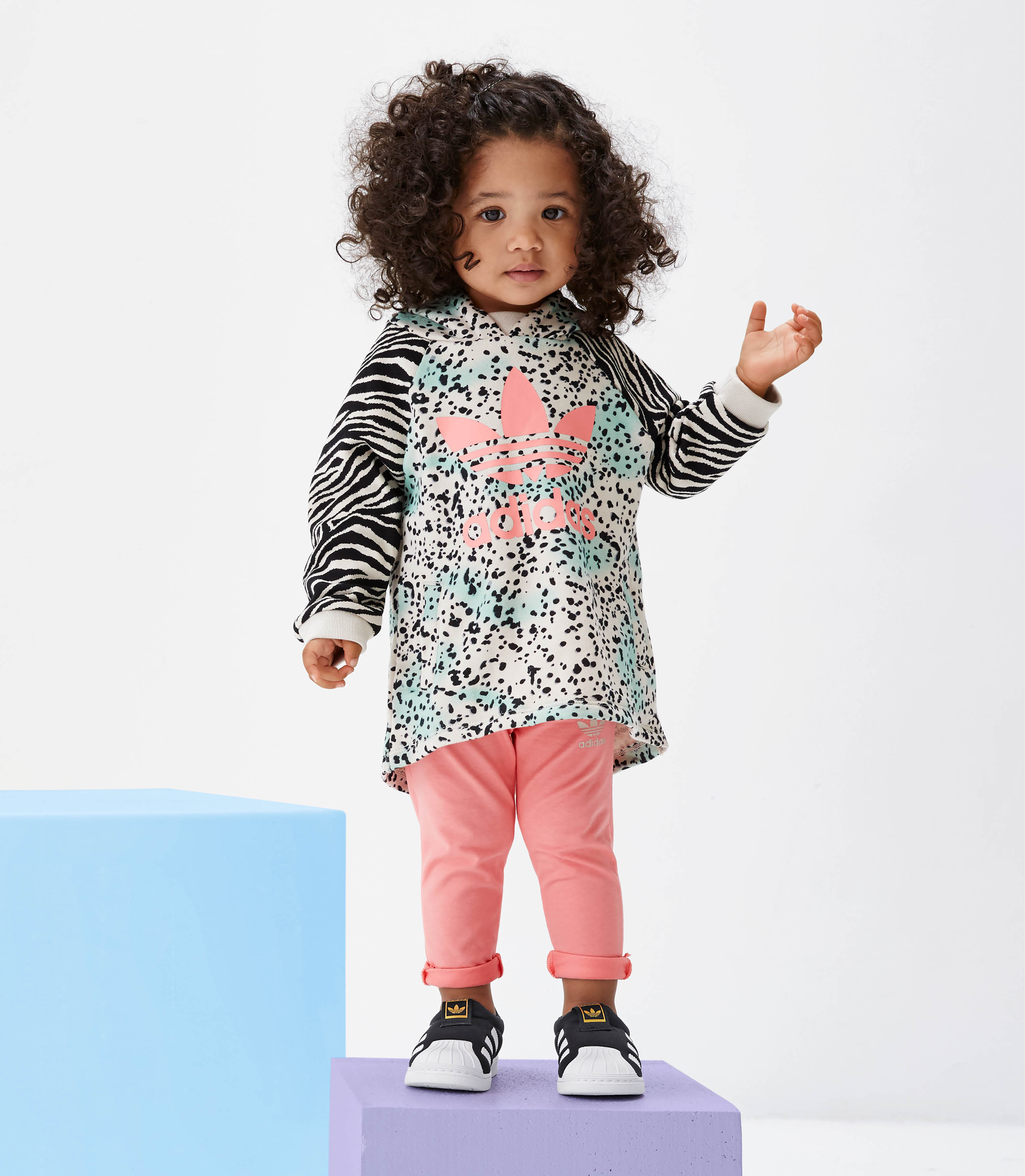 Sneakers are distinguished by an innovative design of the sole, which is suitable for an active lifestyle, including outdoor games. This model offers options for children of both sexes. Lightweight products are equipped with a fairly rigid backdrop. It should be noted that it is permissible to wear Originals sneakers on bare feet, which is typical, it will not lead to the appearance of corns. In this model, it will be great to look like a tiny kid, making his first steps, and a schoolboy who went to a physical education class.