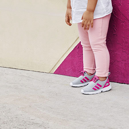 - One of the advantages of the Adidas sneaker is their comfortable dimensional mesh: parents can easily choose the right model for their child. Moreover, it is recommended to purchase children's sneakers with a reserve of one centimeter. After all, kids are growing rapidly, and buying shoes is strictly irrational.