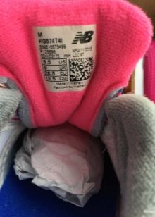 - Look at the sneaker tongue on the inside. There should be an NB logo. It also indicates the size and in which country the goods are produced.