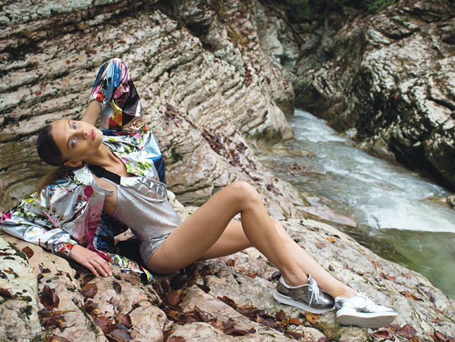 High-quality, comfortable and stylish models of sneakers called Interactive are made from genuine calf leather or suede on an unusual wedge 2.5 cm in height and with a small heel 4 cm in height. The amazing structure of the sole and the overall design of the sneakers, repeating the lines of the legs, provides a convenient and comfortable toe Interactive sneakers.