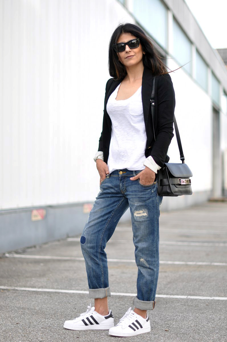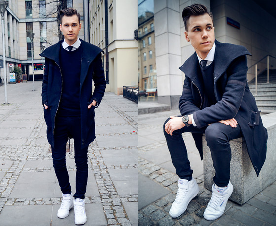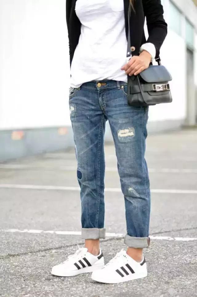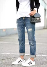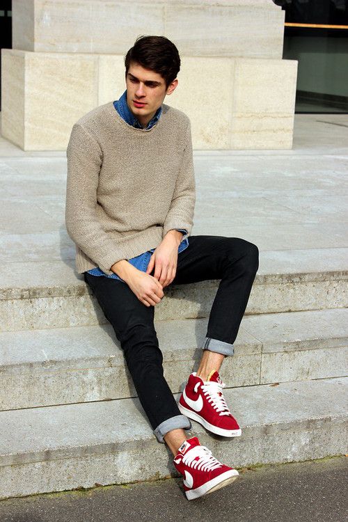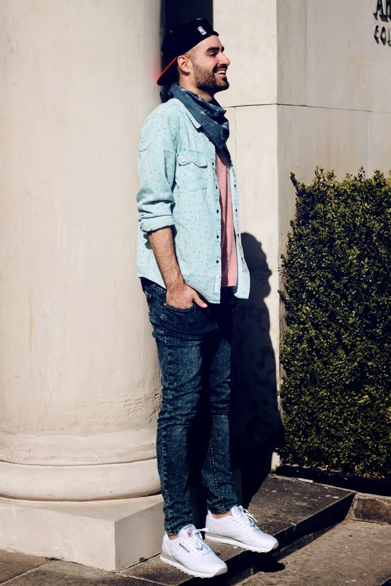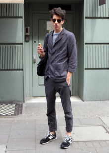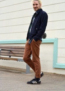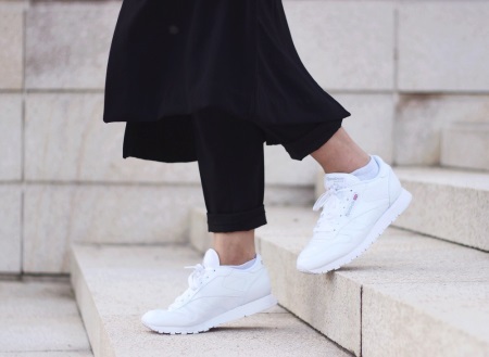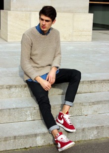 In men's fashion classic sneakers look great in casual style. Young people should pay attention to the combination of classic shoes in white or black with a fitted jacket and high trousers.