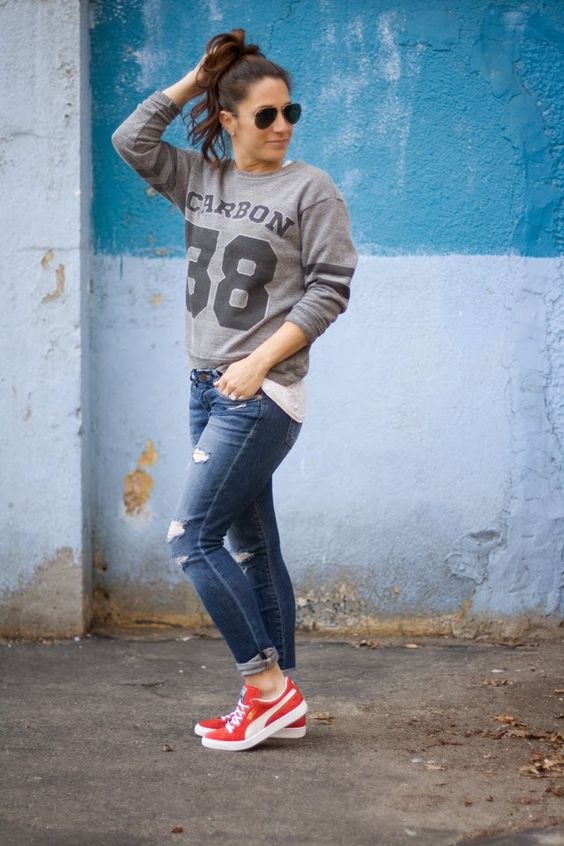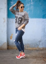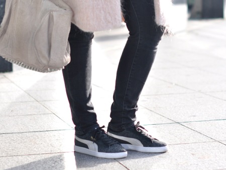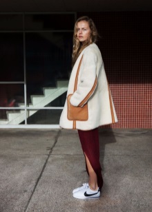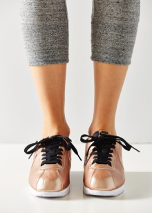 Classic-style sneakers for girls can be combined with midi-skirts, classic twos suits, high jeans and shirt dresses. Some women of fashion are experimenting by combining sneakers with over-size dresses or straight tailored skirts.