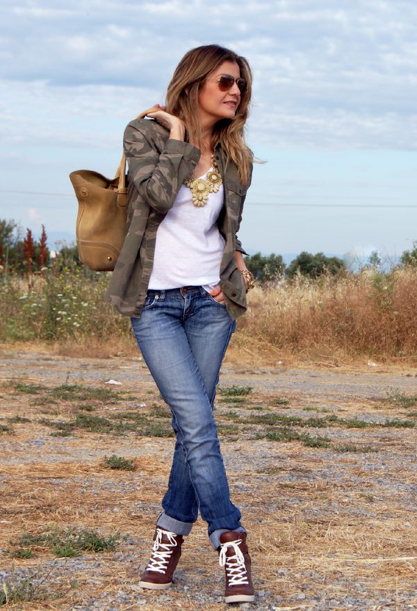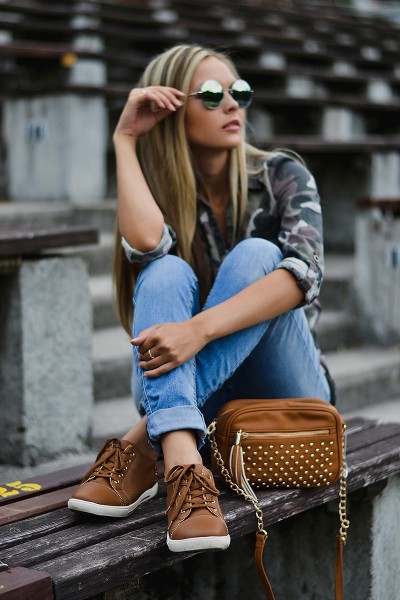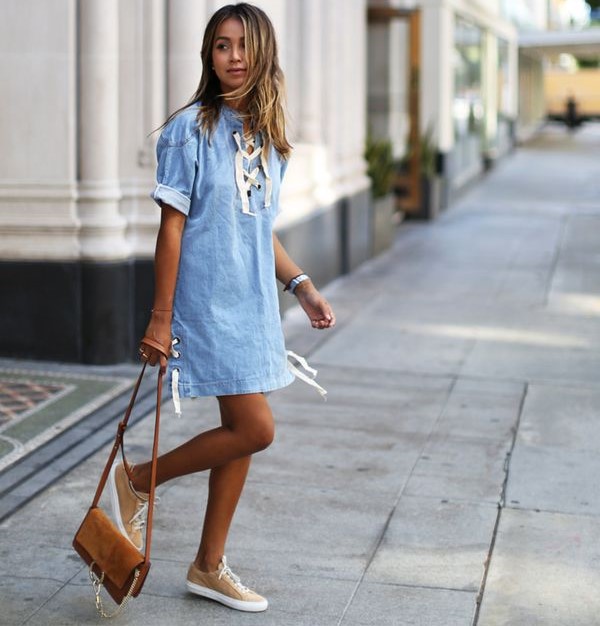 In general, brown models of sneakers fit almost everything. With dresses and skirts, you can also create a beautiful image. Do not be afraid, experiment.