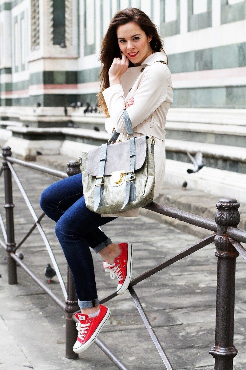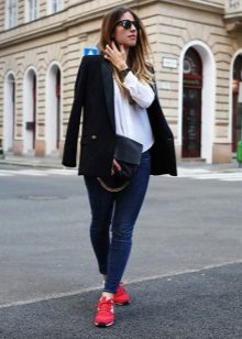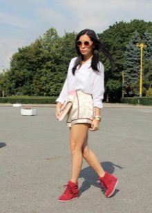 If you wear red sneakers, the clothes should not be red or should be used to a minimum, because it will be too colorful. And it does not mean that you have taste. But any accessory (handbag, glasses, bracelet, belt, necklace, cap or baseball cap) may be red.