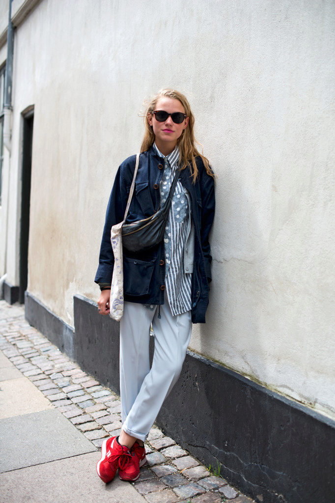 - in summer you can wear it with wide white pants and top; top can be black, light beige or even red - in the color of sneakers;