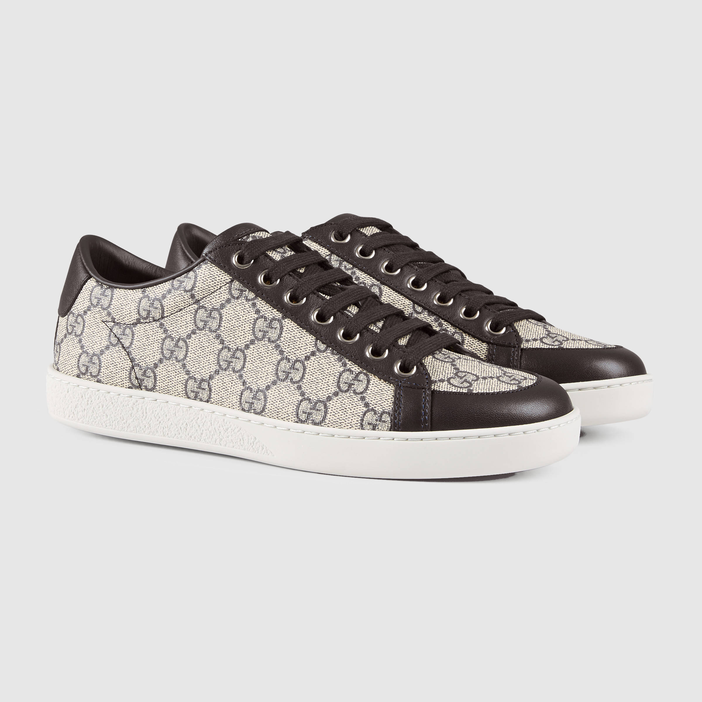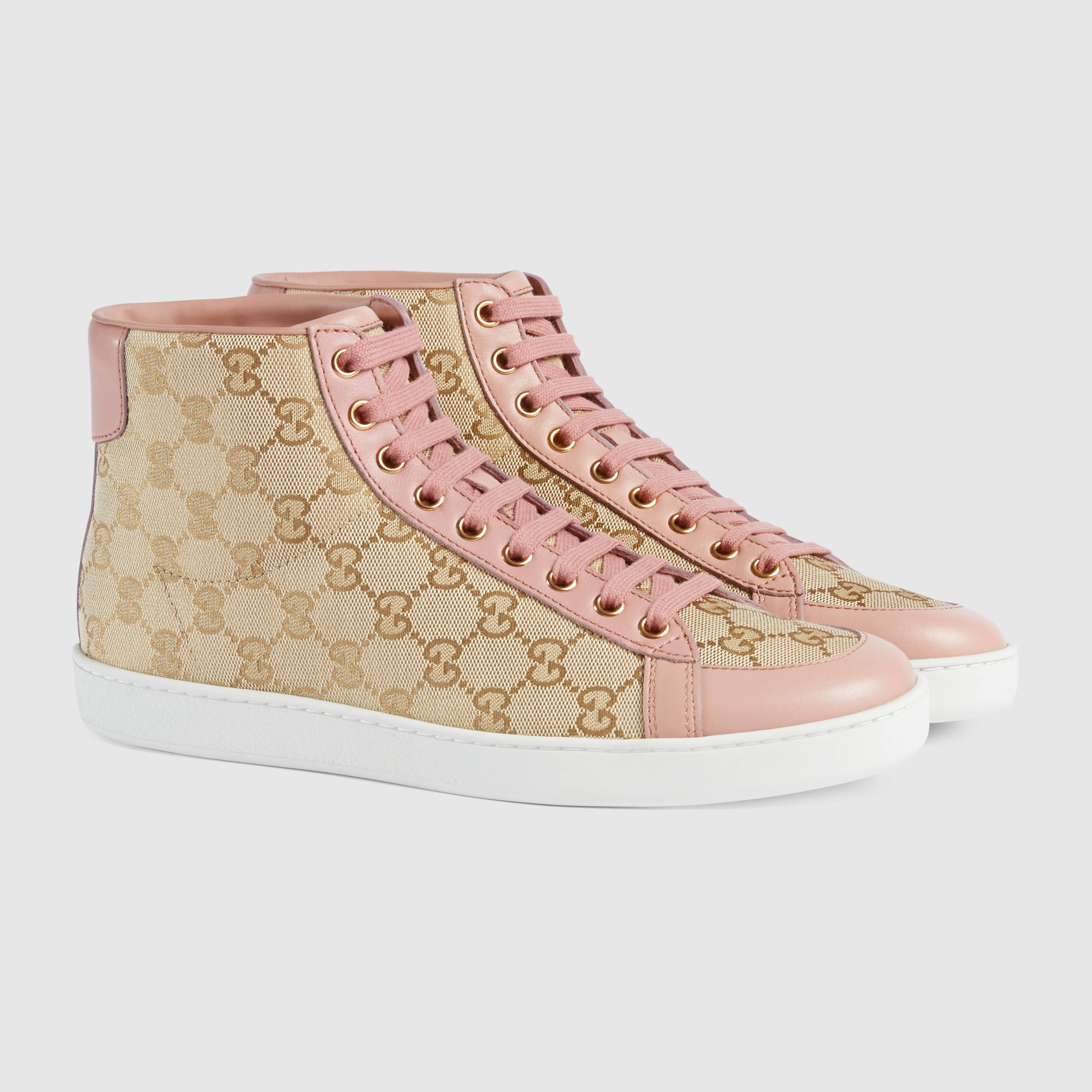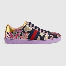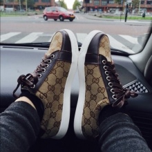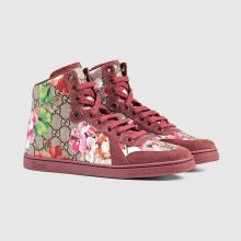 Gucci classic sneakers, made from tapestry fabric with repeating monogram, made up of the brand logo. The model is trimmed with soft leather, usually brown. Also found finish black, pink, burgundy, blue skin.