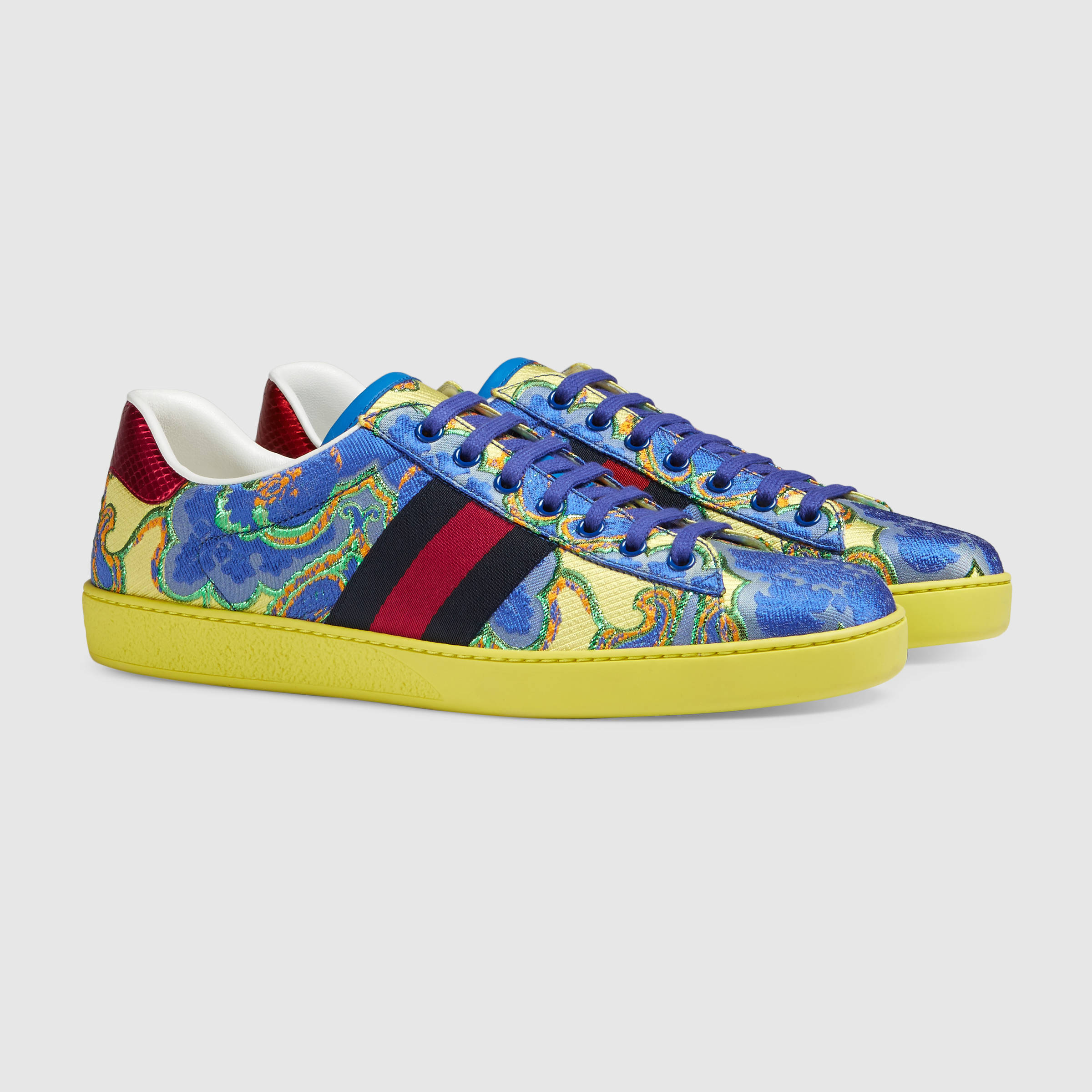 Gucci sneakers are designed for everyday wear, they can confidently be categorized as sport chic. Exquisite design attracts attention, allowing its owner to demonstrate good taste and high status.