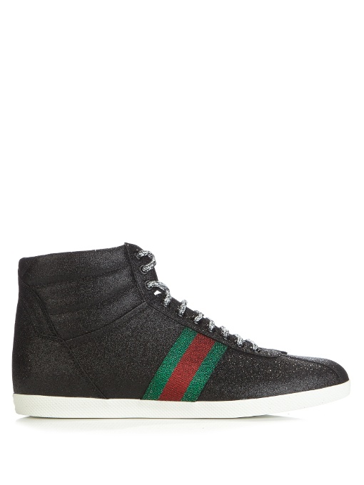 Hi-tops, as a rule, more concise, They are made of soft monochromatic suede in black, but occasionally there are models with glitter and various patterns.